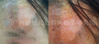 近,广州新世纪白癜风防治研究院接诊了一位特殊的白癜风女孩。令人感到意外的是,女孩额头白斑周围的皮肤已经感染溃烂,见之触目惊心。原来女孩是在另外一所医院接受了308准分子光照射治疗,但由于使用不当引发了感染,不仅病情加重,皮肤也产生了溃烂。