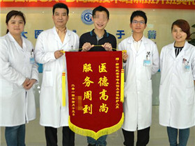 (患者向梁京峰医生送锦旗)