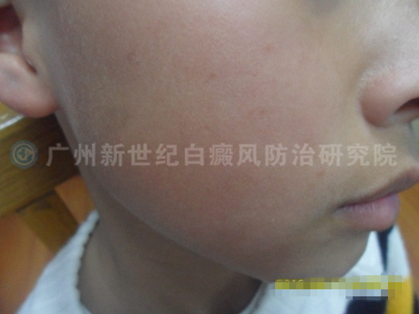就在某一天,我忽然发现孩子两个脸颊上有小白点,以为是粘上东西了,但怎么擦都擦不掉,用水洗也没洗掉。这时候我意识到可能是儿子脸上长斑了。随即,我就带儿子来到了市里的一家医院,皮肤科医生诊断说是白癜风,详细询问了孩子平时的一些生活习惯和饮食后,医生后判断是由于补充维生素C太过量引起的。