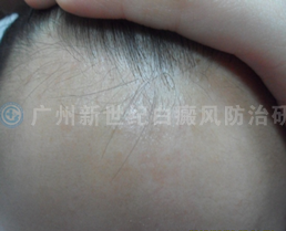 后来我来到了广州新世纪白癜风防治研究院,当时接诊我的是梁京峰医生,在经过一系列的检查诊断,确诊局限型白癜风,说是处于发展期,建议采取“蓝氧自体免疫激活祛白疗法”。在接下来的治疗过程中,我们一家人都很配合梁医生的治疗,不但按时用药,对医生告知的一些生活、饮食注意事项也遵守严格。次复诊的时候,我的病情已经得到了控制。第二次复诊时,我额头上黑色素生长得很好,白斑部位已接近正常皮肤。