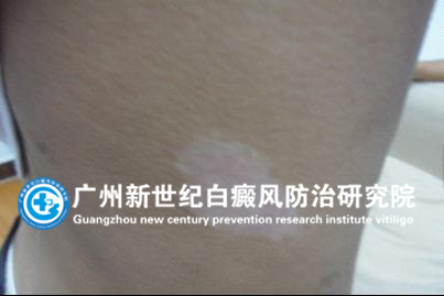 14岁的何勇(化名)是一名初中生,1年前被家人发现其右侧后腰出现白斑症状,后白斑面积逐渐增大。期间没有接受过任何治疗,白斑扩散明显,且胸前也出现脱色的现象,恐其继续发展,在家人的陪同下,何勇来到了广州新世纪白癜风防治研究院。
