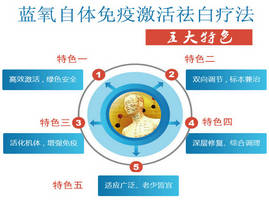 通过特殊处理的活性氧成分能够改变脂质分子功能,从而帮助免疫细胞活化,提高其对外来抗原的敏感性,有助于机体清除病原体。激活修复黑色素细胞获取营养的供应通道,使黑色素细胞正常营养供应,提高体内免疫指标,在根本上调节致病因子、防止链状的形成,从而达到治疗的目的。