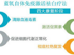 将经特殊处理的活性氧融入血液,使其渗透入皮肤内毛细血管,并迅速分解为氧分子和氧原子,氧分子和氧原子迅速渗透到白斑病灶区域,参与机体新陈代谢,清除血液中自由基性能。靶向病变源头,抑制病变细胞分化过程,减缓细胞过度增殖,同时清除和减少血液中抗原-抗体复合物的形成,促进受损黑色素细胞的抗原性表达,快速将变异细胞分离出来,并进行围剿清除。从而达到了净化机体内环境,消除体内发生黑色素脱失的作用因素。