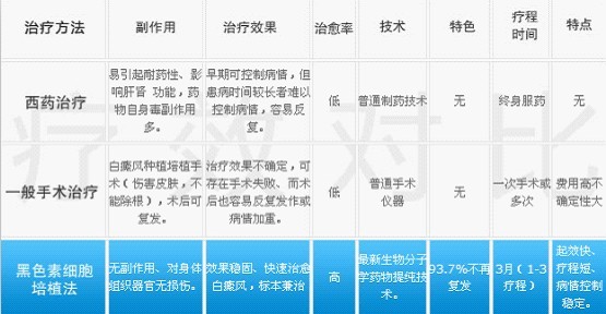 黑色素细胞培植术与其他疗法疗效对比: