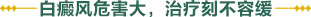 白癜风已成为广大患者生活、工作、交际的极大障碍,因为它,与很多机遇失之交臂,也是因为它,不足8%的遗传几率使有情人不能终成眷属,还是因为它,遭遇异样的眼光,虽然白癜风危害很大,但是白癜风不是不治之症,只要及时治疗,遵循医生的嘱咐就可以康复。