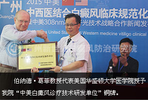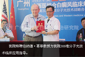 伯纳德·葛菲教授参观我院308治疗室,并赞言:"贵院在对308准分子光治疗仪的操作规范上和临床应用上具有很高水准。"