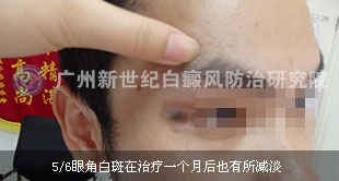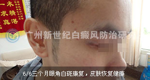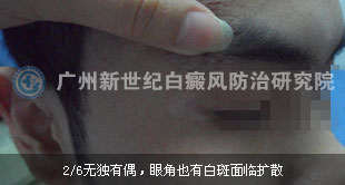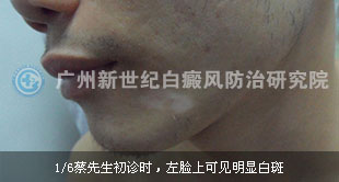 蔡先生半年前发现左脸、右眼角处突显小白斑,后来白斑不断扩散变大,就到当地的地方医院去检查,检查结果确诊为白癜风,于是就在该医院治疗。
